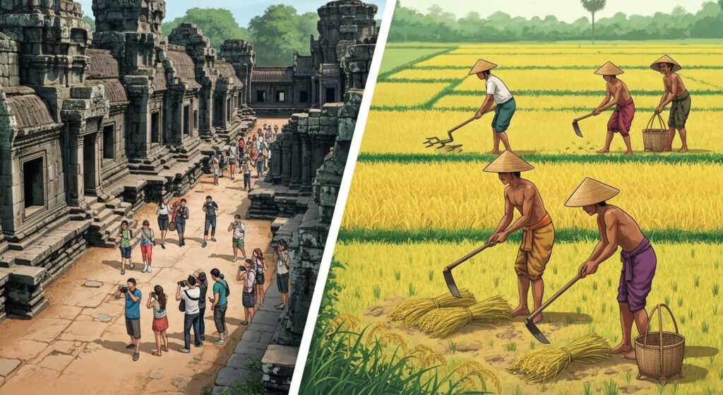 앙코르 유적지는 단순한 폐허가 아니라, 112개의 역사적 정착지에 12만 명 이상의 주민이 거주하며 농업과 전통 문화를 이어가는 ‘살아있는 유산(Living Heritage)’입니다 . 이 모델은 유산 보존과 지역 사회의 지속 가능한 발전이라는 두 마리 토끼를 잡으려는 복잡한 시도입니다.