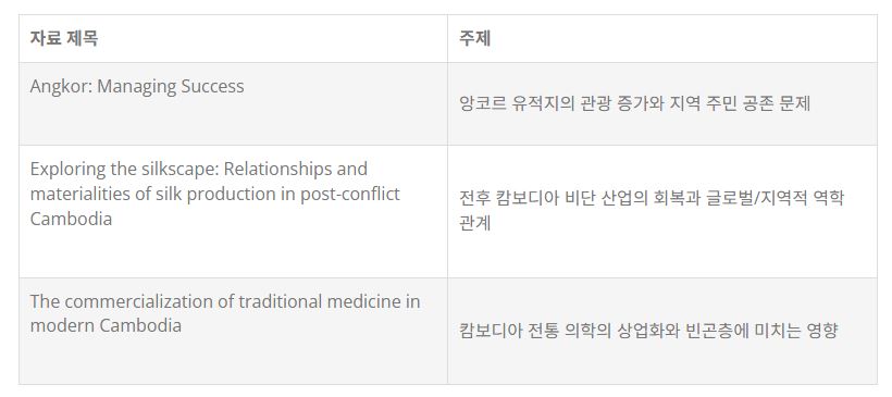 - ‘실크스케이프(Silkscape)’의 복잡성: 캄보디아의 비단 산업은 직조공, 중간 상인, 국제 NGO, 그리고 해외 디아스포라 공동체까지 얽힌 초국가적 네트워크를 형성합니다.
